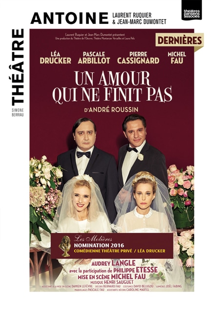 Un amour qui ne finit pas a été nommé aux Molières 2016 dans la catégorie « Molière de la Comédienne dans un spectacle de Théâtre privé » pour Léa Drucker. Cette pièce a été diffusée sur France 2 lors de ces dernières représentations.